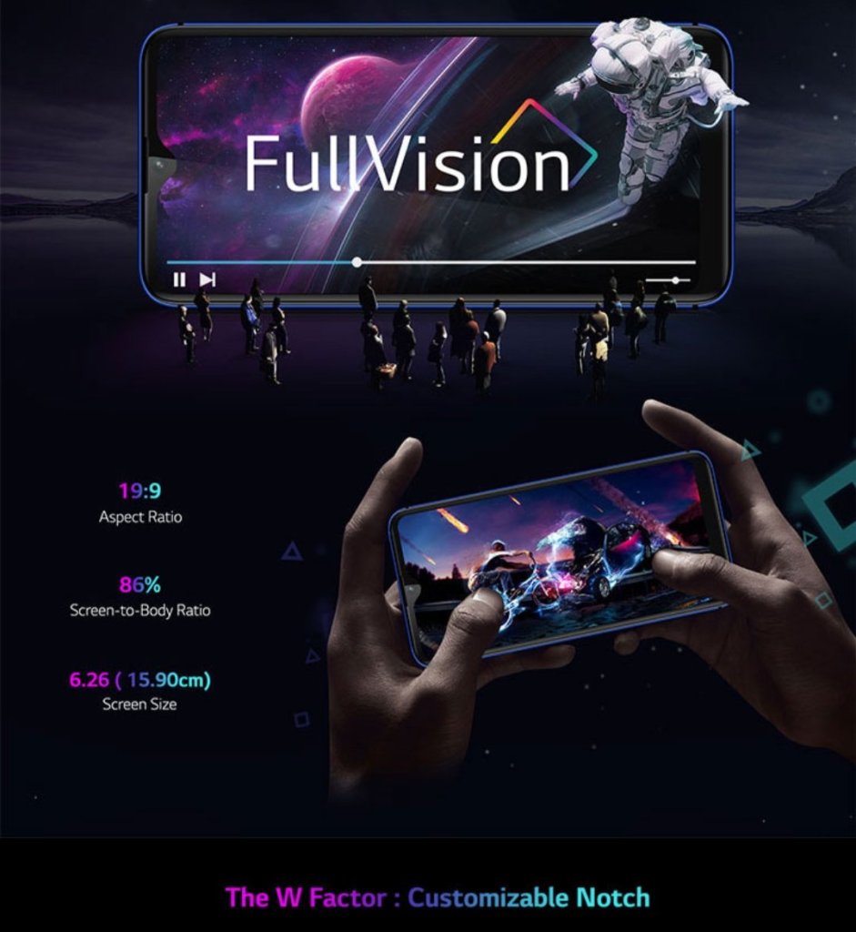 LG W30 स्पेसिफिकेशन एलजी डब्ल्यू10 की तरह डुअल-सिम LG W30 भी आउट ऑफ बॉक्स एंड्रॉयड 9 पाई पर चलेगा। यह 6.26 इंच के एचडी+ आईपीएस डॉट फुलविज़न डिस्प्ले के साथ आता है। आस्पेक्ट रेशियो 19:9 है। फोन में मीडियाटेक हीलियो पी22 प्रोसेसर का इस्तेमाल हुआ है। साथ में 3 जीबी रैम दिए गए हैं। इनबिल्ट स्टोरेज 32 जीबी है और माइक्रोएसडी कार्ड के लिए भी सपोर्ट मौज़ूद है।